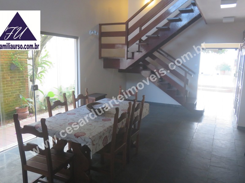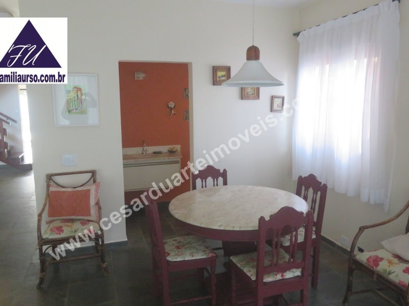 4 SUÍTES - SALA DE JANTAR - SALA DE ESTAR - SALA DE TV - LAVABO - 5 BANHEIROS - JARDIM - ÁREA DE CHURRASQUEIRA COBERTA COM CHURRASQUEIRA E FORNO A LENHA - VARANDA - PISCINA - ÁREA DE SERVIÇO - GARAGEM PARA 3 VEÍCULOS - ESCRITÓRIO - QUINTAL - EDÍCULA COM SUÍTE E COZINHA